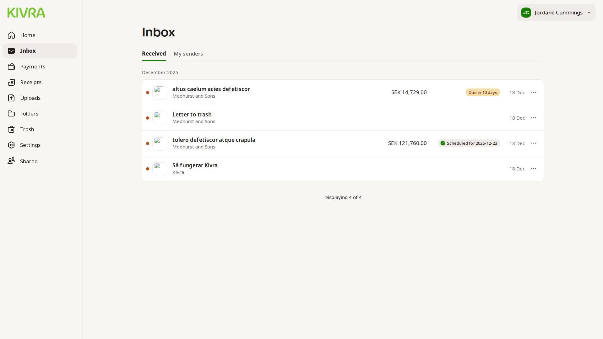 <p color="$text-primary" class="css-xm9hwu">You can also share your content in Kivra with others. Great if you share your household expenses with someone or if you find digital services a bit tricky.</p>