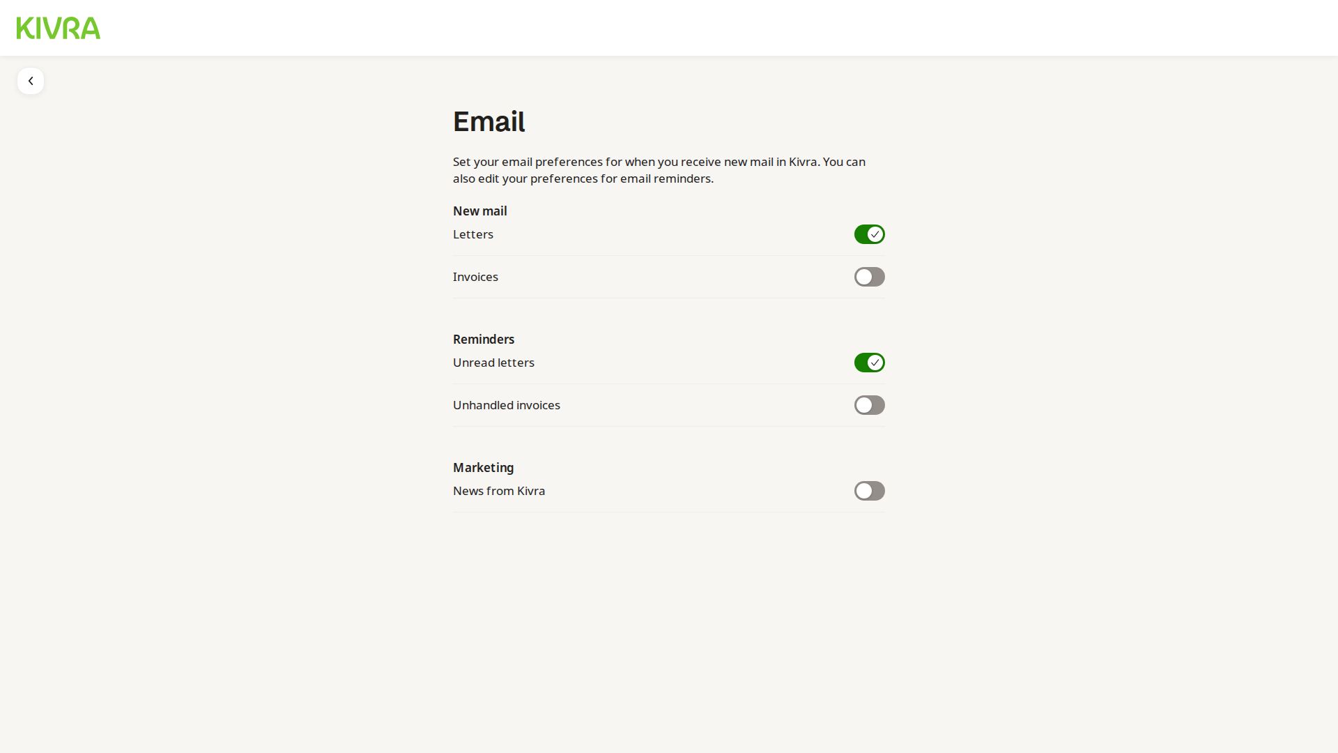 <p class="css-xm9hwu">Mail from companies connected to Kivra.</p>